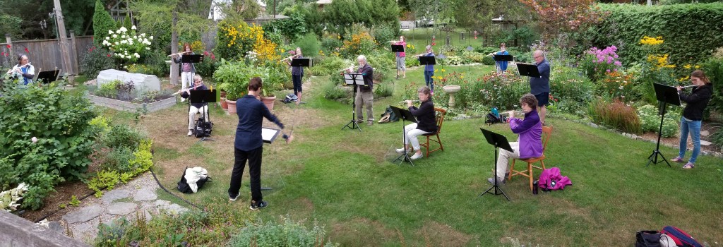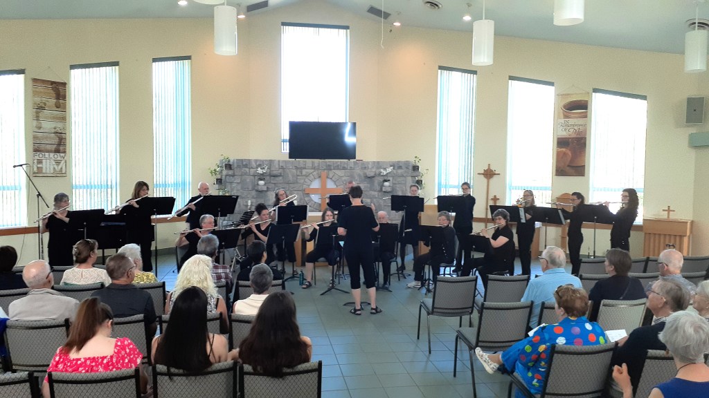 Flutissimo is a community flute group of approximately 15 members who have enjoyed playing together since 2001. Our instruments include C flutes as well as piccolo, alto and bass flutes and our music selections are from a variety of styles, classical to contemporary, original works as well as arrangements. We have performed for the Kingston Symphony Music Lovers House Tour, as guests with the Kimball Theatre Organ Society, at the annual dinner of the Kingston Symphony Volunteer Committee, at concerts in the noon-hour series held at St. George’s Cathedral and as guests of She Sings and Kingston Chamber Choir. In 2010, we gave a concert jointly with the Kingston Horn Quartet as part of the Music West series. We also frequently perform at seniors residences in the Kingston area. Each spring we give our own concert with guest musicians which have included Glen Fast (flute), Sharlene Wallace (harp), Julie Paul (oboe), Dave Barton (guitar), Danielle Lennon (violin), Doug Rooks (double bass/keyboard) and Jennifer Tindale (cello)